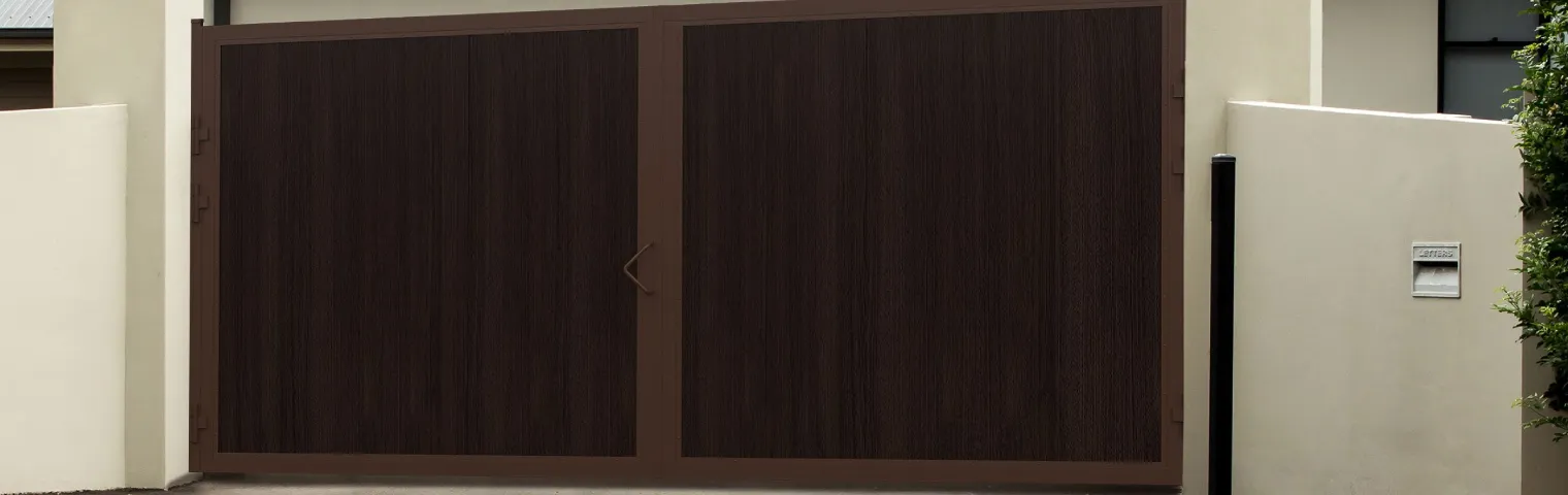 Распашные ворота – разновидность уличных ограждающих систем. Они отличаются простой, но надежной конструкцией, благодаря которой могут быть установлены даже в тех местах, где невозможен монтаж других видов ограждений. Изготавливаются с полотном из панелей «сэндвич», которое окантовывается высокопрочным алюминиевым профилем, покрытым порошковой краской для защиты от неблагоприятных воздействий окружающей среды.